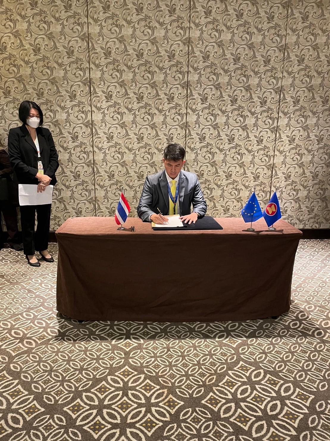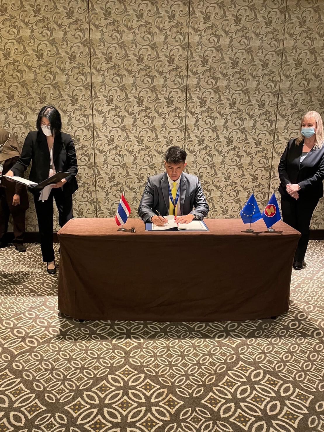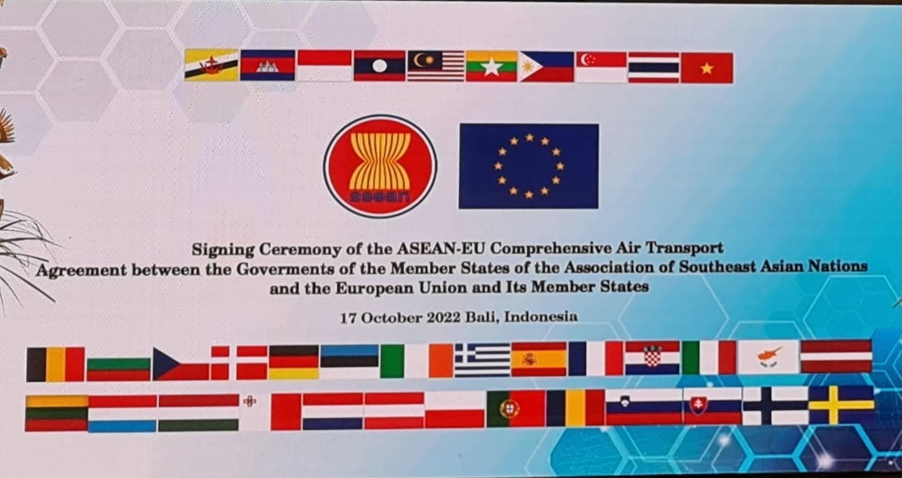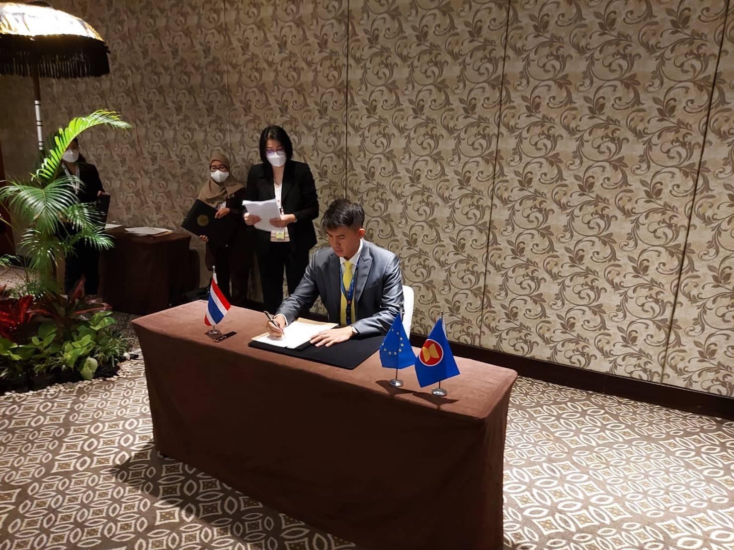 นายอธิรัฐ รัตนเศรษฐ รัฐมนตรีช่วยว่าการกระทรวงคมนาคม และรัฐมนตรีขนส่งอาเซียนได้ร่วมลงนามความตกลงที่สำคัญ 2 ฉบับ ได้แก่ ความตกลงว่าด้วยการขนส่งทางอากาศระหว่างอาเซียน – สหภาพยุโรป (ASEAN-EU Comprehensive Air Transport Agreement: AE CATA) ซึ่งนับเป็นความตกลงด้านการขนส่งทางอากาศระหว่างภูมิภาค (bloc-to-bloc) ฉบับแรกของโลก เพื่อส่งเสริมความเชื่อมโยงระหว่างอาเซียนกับสหภาพยุโรปและอำนวยความสะดวกการเดินทางของผู้คนและการขนส่งสินค้า ซึ่งจะช่วยเปิดโอกาสทางธุรกิจและเสริมสร้างความเติบโตด้านเศรษฐกิจการบินระหว่างภูมิภาค อีกทั้งยังสนับสนุนการฟื้นฟูภาคการบินภายหลังจากการแพร่ระบาดของโรคติดเชื้อไวรัส COVID-19 โดยความตกลง AE CATA จะช่วยเพิ่มทางเลือกในการเดินทาง รวมทั้งจำนวนเที่ยวบินและเส้นทางการบินที่เพิ่มขึ้นระหว่างภูมิภาคเอเชียตะวันออกเฉียงใต้กับภูมิภาคยุโรป