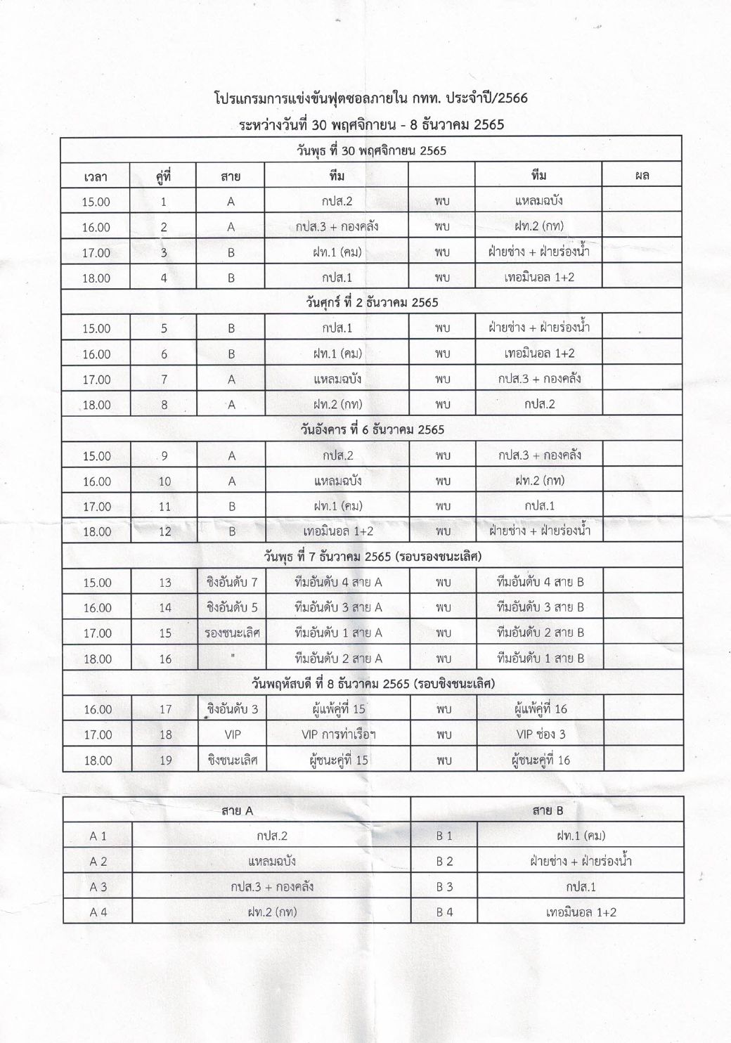 สำหรับการแข่งขันฟุตซอลภายใน กทท. ประจำปี 2566 จะทำการแข่งขันตั้งแต่วันนี้ ไปจนถึงวันที่ 8 ธันวาคม 2565 โดยมีทีมเข้าร่วมแข่งขันทั้งสิ้น 8 ทีม ประกอบด้วย ทีม กปส.2 , ท่าเรือแหลมฉบัง , กปส.3+กองคลัง , ฝท.1 (คม) , ฝท.2 (กท) , กปส.1 , เทอมินอล 1+2 , ฝ่ายการช่าง+ฝ่ายการร่องน้ำ โดยจะเริ่มแข่งขันตั้งแต่เวลา 15.00 -18.00 น. ขอเชิญชวนพนักงานที่ว่างเว้นจากการทำงานสามารถเดินทางมาร่วมชม เพื่อให้กำลังใจนักกีฬาฟุตซอลภายในของ กทท. ได้ตามวัน-เวลาดังกล่าว