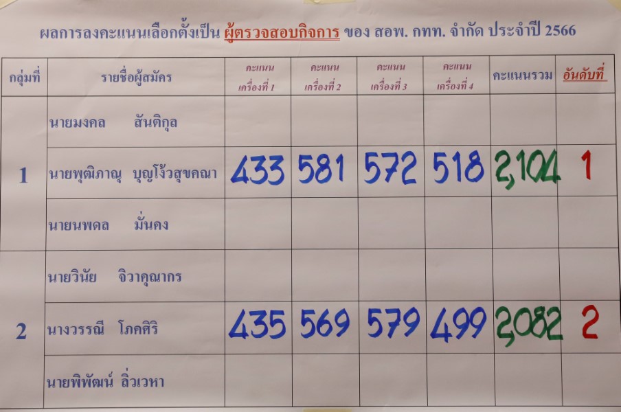 ผลการเลือกตั้งคณะกรรมการดำเนินการสหกรณ์ออมทรัพย์ฯ กทท.