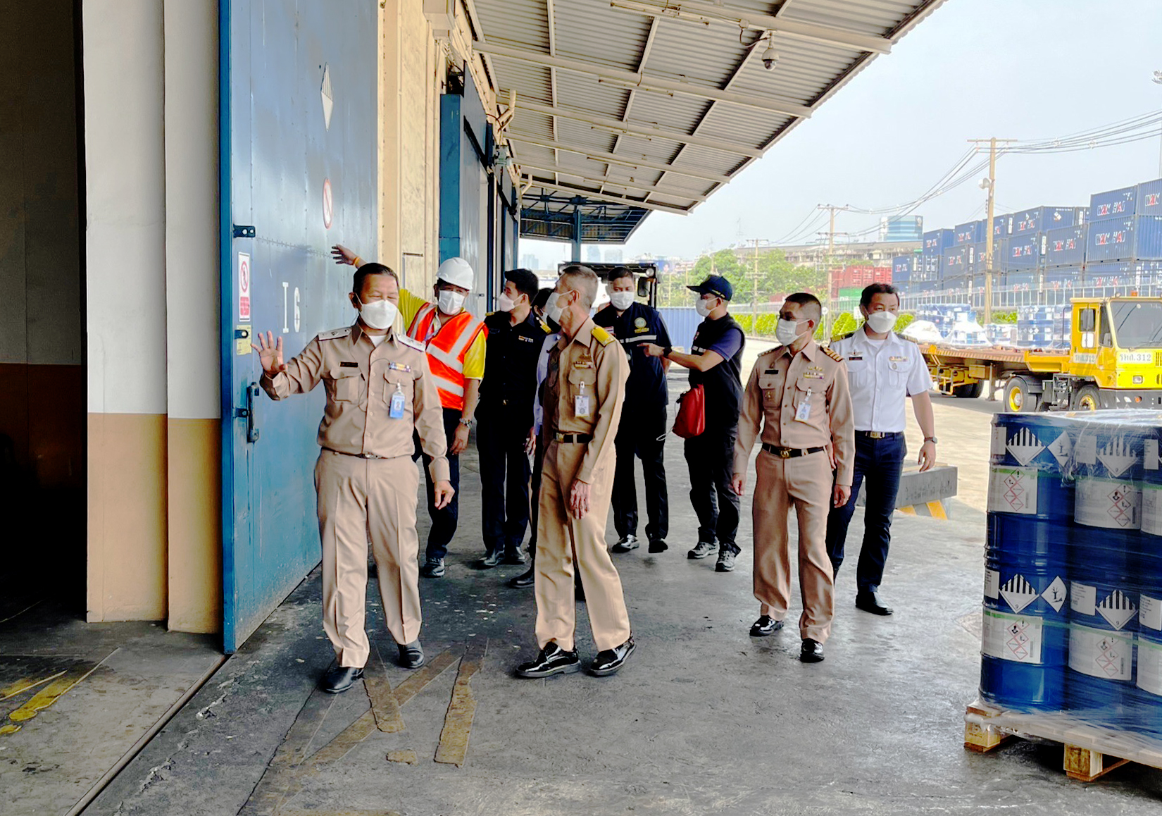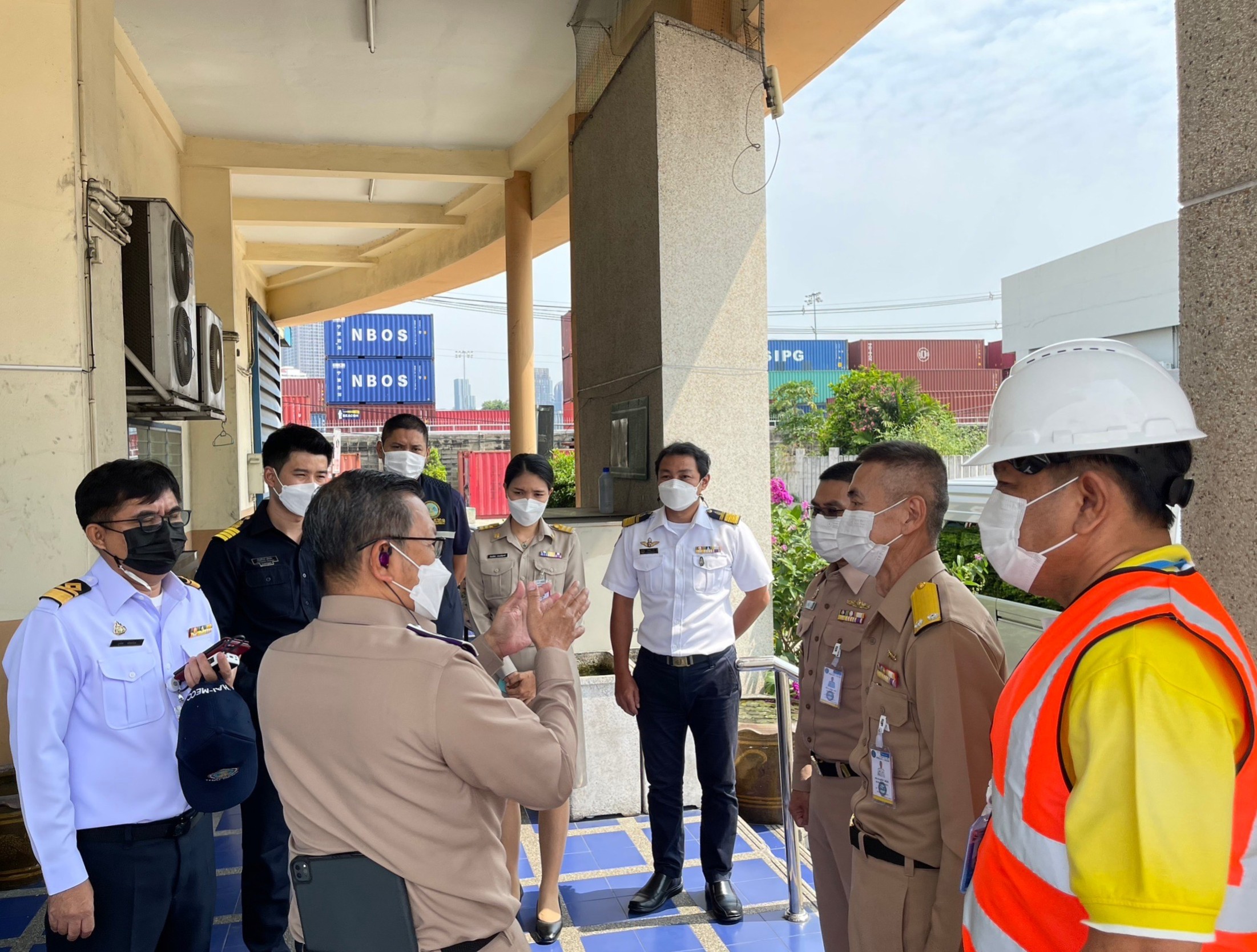 เมื่อวันที่ 14 มีนาคม 2566 เรือโท ภูมิ แสงคำ ผู้อำนวยการท่าเรือกรุงเทพ ให้การต้อนรับ พลเรือตรี บุญรักษ์ โพธิ์แก้ว ผู้อำนวยการสำนักงานฝ่ายอำนวยการ ศูนย์อำนวยการรักษาผลประโยชน์ของชาติทางทะเล (ศรชล.) ภาค 1 นาวาเอก พลัฏฐ์ อุทธา หัวหน้าศูนย์ความมั่นคงท่าเรือกรุงเทพมหานคร และคณะเจ้าหน้าที่ประสานความมั่นคง ในโอกาสเข้าเยี่ยมชมกิจการ กทท. เพื่อศึกษาดูงานขั้นตอนการนำเข้า-ส่งออกทางเรือ และการบริหารจัดการการขนส่งสินค้าของท่าเรือกรุงเทพ ณ ห้องผู้อำนวยการท่าเรือกรุงเทพ อาคารที่ทำการ การท่าเรือแห่งประเทศไทย พร้อมดูงานภายในเขตรั้วศุลกากร ท่าเรือกรุงเทพ