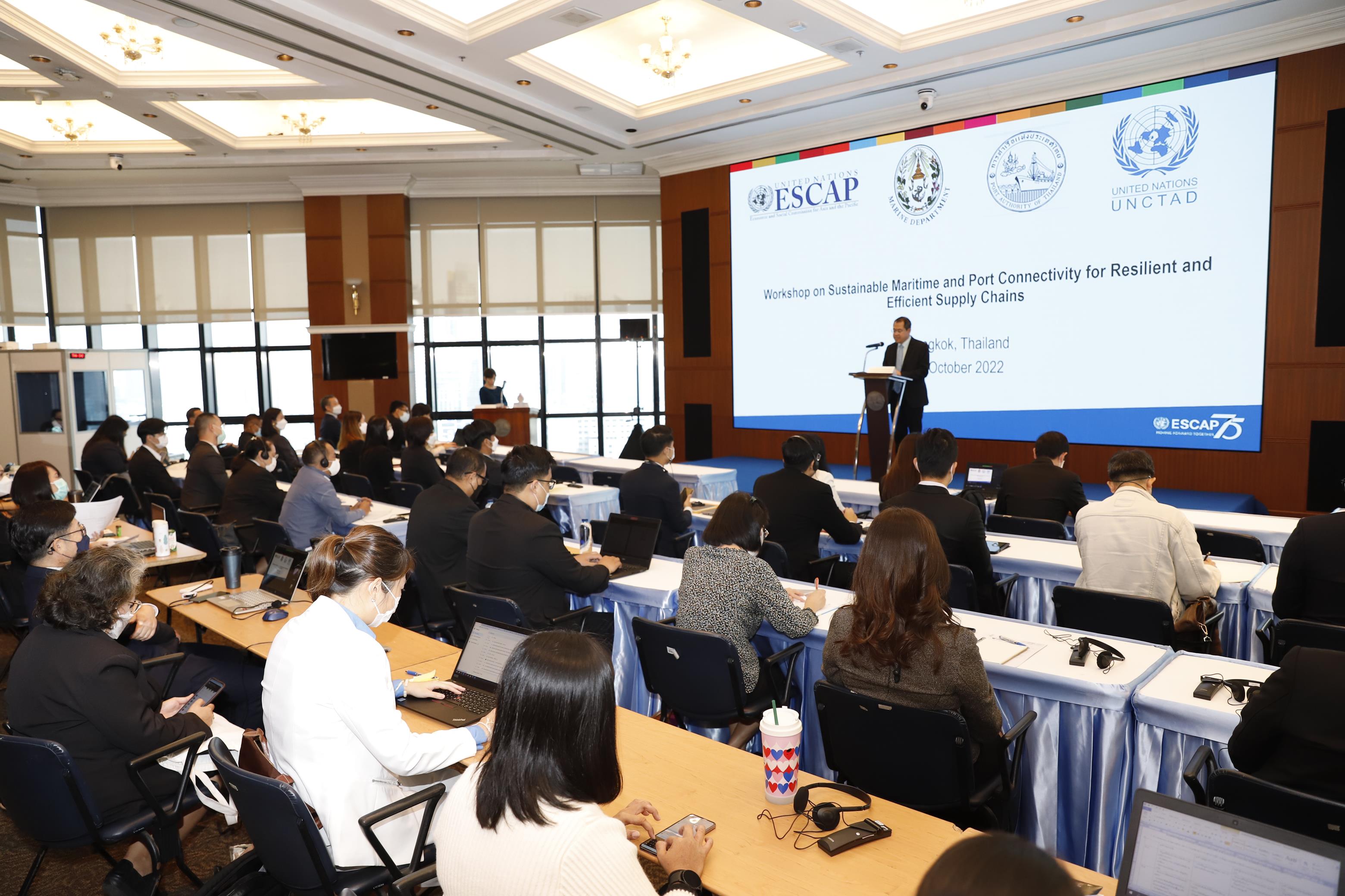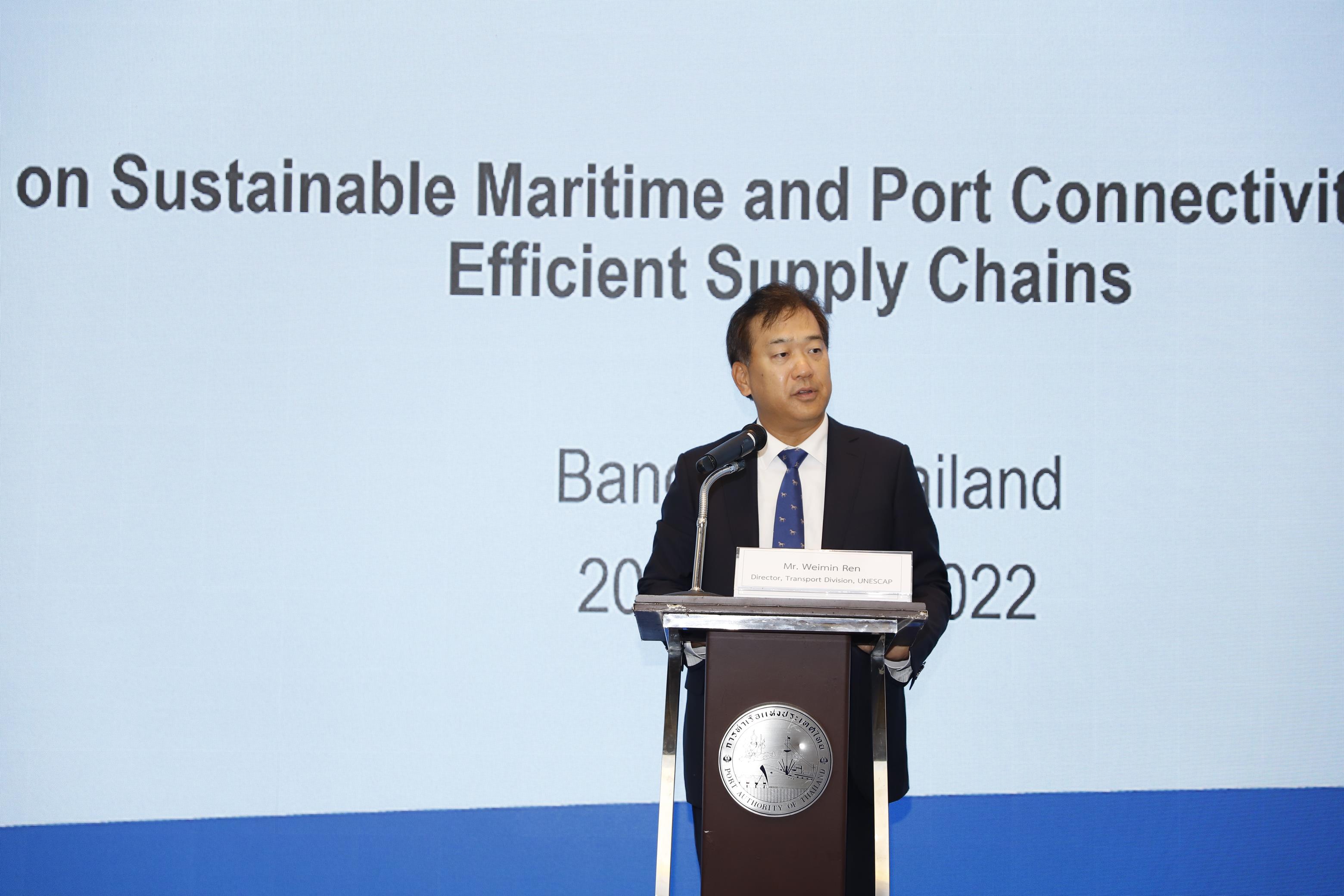 เมื่อวันที่ 20 ตุลาคม 2565 นายเกรียงไกร ไชยศิริวงศ์สุข ผู้อำนวยการการท่าเรือแห่งประเทศไทย เป็นประธานในพิธีการประชุมเชิงปฏิบัติการระดับชาติว่าด้วยความยั่งยืนและความเชื่อมโยงทางทะเลเพื่อ การฟื้นตัวและประสิทธิภาพห่วงโซ่อุปทาน (National workshop for Thailand on sustainable maritime Transport) พร้อมด้วย เรือโท ยุทธนา โมกขาว รองผู้อำนวยการการท่าเรือฯ สายบริหารการเงินและกลยุทธ์องค์กร ผู้บริหาร พนักงานการท่าเรือฯ ผู้แทนจากหน่วยงานภาครัฐ เอกชน มหาวิทยาลัย และหน่วยงานที่เกี่ยวกับการขนส่งทางน้ำ เพื่อมุ่งเน้นด้านเศรษฐกิจสังคม และสิ่งแวดล้อมอย่างยั่งยืนและการพัฒนาท่าเรือที่มีความคล่องตัวรองรับการเชื่อมต่อการขนส่งทางทะเลอย่างยั่งยืน โดยคำนึงถึงบริบทของประเทศไทยและจะมุ่งอำนวยความสะดวกในการแลกเปลี่ยนความคิดเห็นและข้อเสนอแนะเกี่ยวกับยุทธศาสตร์การเชื่อมโยงการขนส่งทางทะเล ณ ห้องประชุมชั้น 19 อาคารที่ทำการการท่าเรือฯ