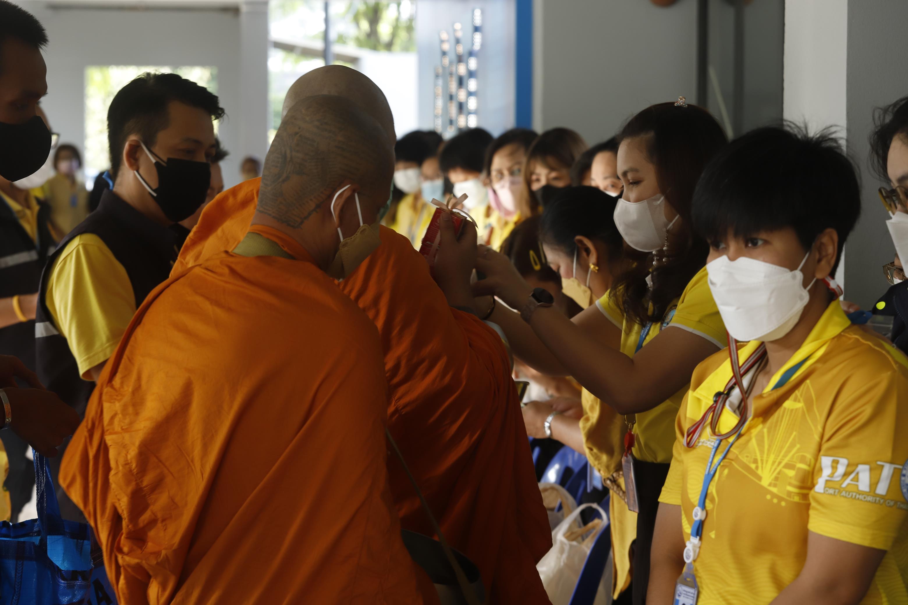 On November 8, 2022, Port Authority of Thailand employees Participate in the activity of giving alms to monks every day at the Big Buddha. For good fortune and to inherit the good culture and traditions of Thailand. By inviting three monks from Khlong Toei Nok Temple to receive alms on the ground floor of the Port Office Building.