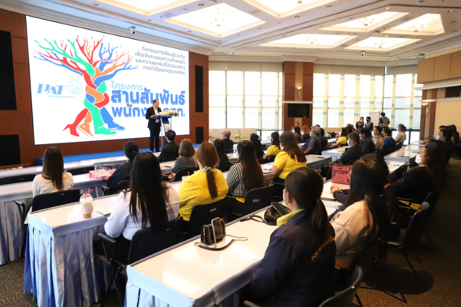 On February 28, 2023, Mr. Kriangkrai Chaisiriwongsuk Director of the Port Authority of Thailand Honored to be the chairman of the opening of the PAT employee relations project. Fiscal year 2023 and Activity 1 “Message from the Heart of Executives” which is a joint discussion. communicate, listen Exchange opinions Both in terms of work guidelines Survey results of satisfaction and organizational commitment of PAT employees. Including suggestions from employees Fiscal year 2022 by inviting Professor Phusaming Duangkerd, an expert in creating organizational culture and values. Including the satisfaction and engagement of employees as consultants to provide knowledge and advice to employees participating in the project. with PAT executives and employees From various agencies and representatives of the State Enterprise Labor Union, PAT. A total of 60 people participated in the project at the meeting room on the 19th floor of the PAT office building.