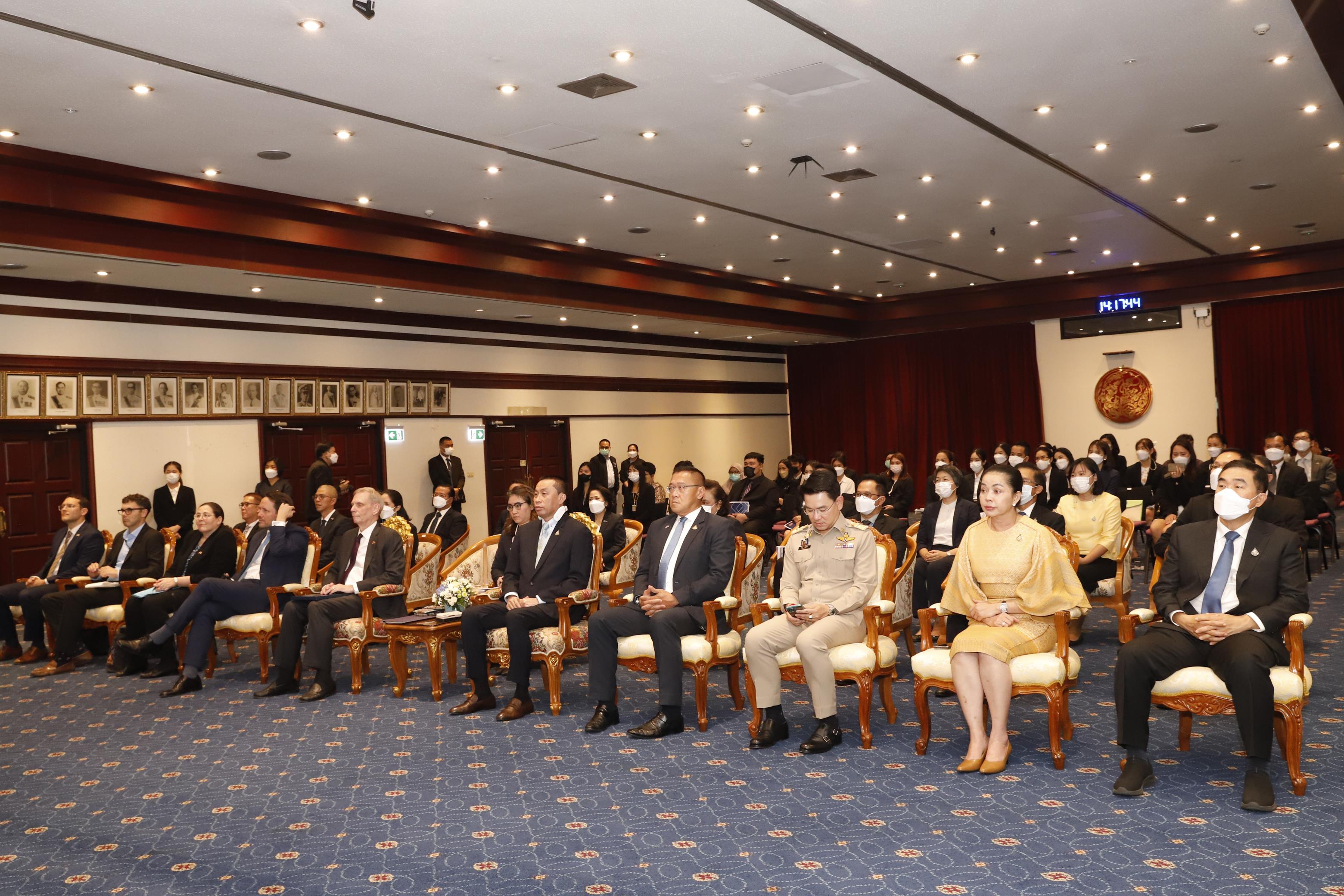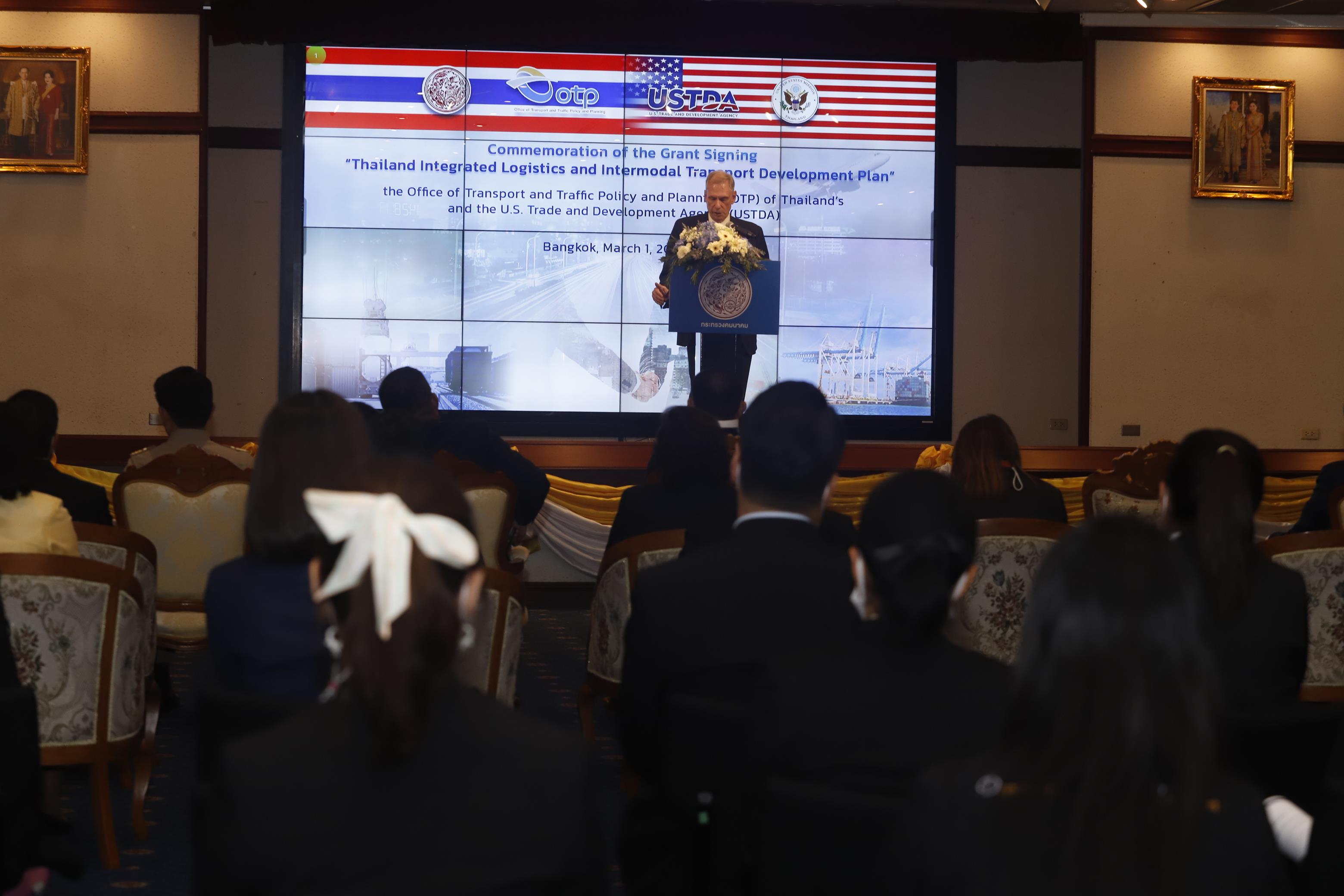 เมื่อวันที่ 1 มีนาคม 2566 นายศักดิ์สยาม ชิดชอบ รัฐมนตรีว่าการกระทรวงคมนาคม เป็นประธานและร่วมเป็นสักขีพยาน ในพิธีแลกเปลี่ยนบันทึกความตกลงการให้ความช่วยเหลือทางวิชาการระหว่างสำนักงานนโยบายและแผน การขนส่งและจราจร กระทรวงคมนาคม และองค์การการค้าและการพัฒนาของสหรัฐอเมริกา (United States Trade and Development Agency: USTDA) พร้อมด้วย นายโรเบิร์ต เอฟ. โกเดค อัครราชทูตสหรัฐอเมริกาประจำประเทศไทย นายจอห์น ไบรเดนสไตน์ อัครราชทูตที่ปรึกษา และเจ้าหน้าที่อาวุโสประจำภูมิภาคอาเซียนฝ่ายพาณิชย์ นางสุขสมรวย วันทนียกุล เลขานุการรัฐมนตรีว่าการกระทรวงคมนาคม นายชยธรรม์ พรหมศร ปลัดกระทรวงคมนาคม นายพิศักดิ์ จิตวิริยะวศิน นายสรพงศ์ ไพฑูรย์พงษ์ รองปลัดกระทรวงคมนาคม ผู้บริหารกระทรวงคมนาคม เรือโท ยุทธนา โมกขาว รองผู้อำนวยการการท่าเรือแห่งประเทศไทย สายบริหารการเงินและกลยุทธ์องค์กร และผู้แทนหน่วยงานที่เกี่ยวข้องเข้าร่วมในพิธี โดยมี นายปัญญา ชูพานิช ผู้อำนวยการสำนักงานนโยบายและแผนการขนส่งและจราจร และนายสิทธิศักดิ์ อภิชาติธนพัฒน์ รองผู้จัดการภูมิภาคเอเชีย USTDA ร่วมแลกเปลี่ยนบันทึกความตกลงฯ ดังกล่าว ในวันที่ 1 มีนาคม 2566 ณ หอประชุม ราชรถสโมสร กระทรวงคมนาคม