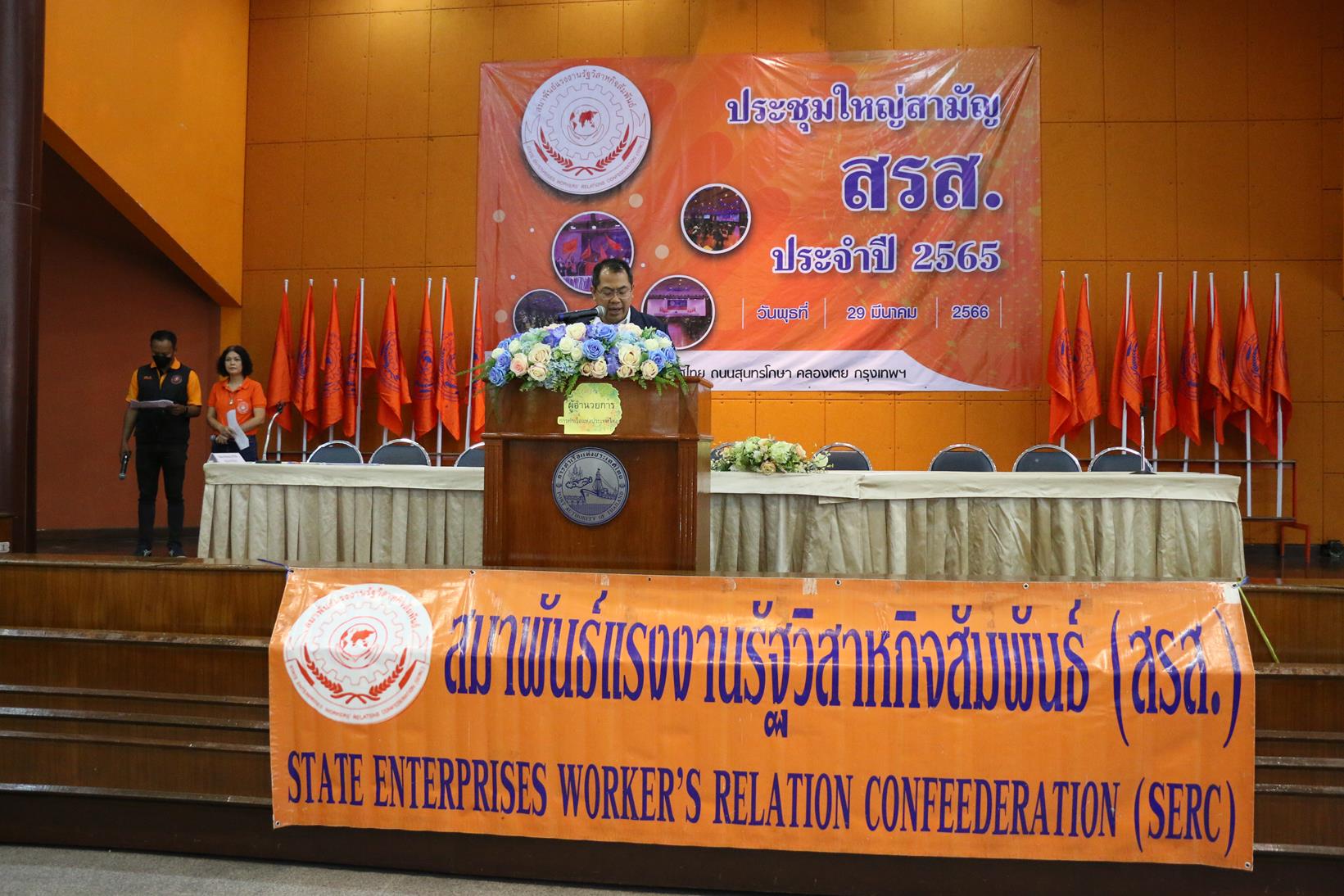 On March 29, 2023, Mr. Kriangkrai Chaisiriwongsuk Director of the Port Authority of Thailand Chaired the 2022 general meeting of the State Enterprise Labor Relations Confederation and the election of the 19th Executive Committee of the Confederation by the Port State Enterprise Labor Union. Was honored to be the host of the meeting. which has members from government enterprise unions and the private sector Attended the meeting at the Port Authority Club.