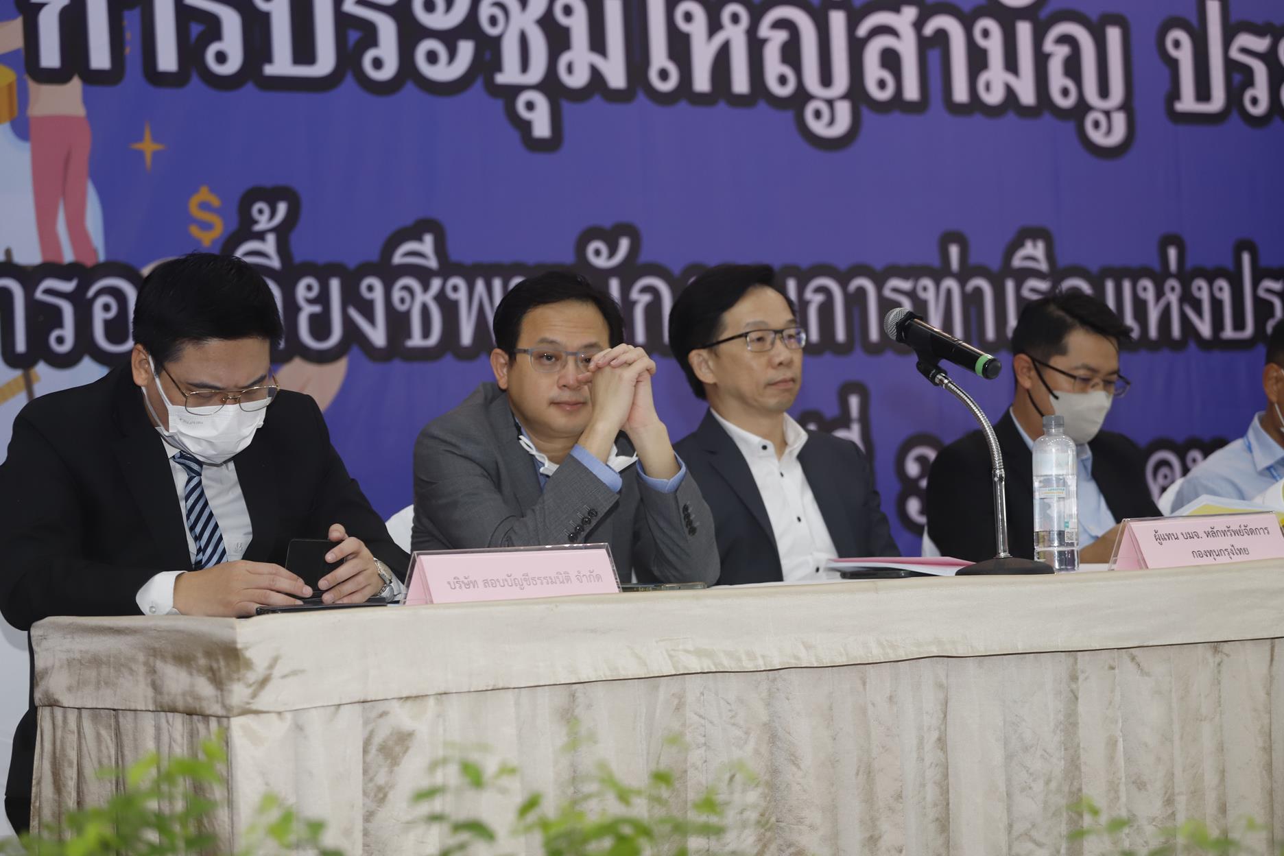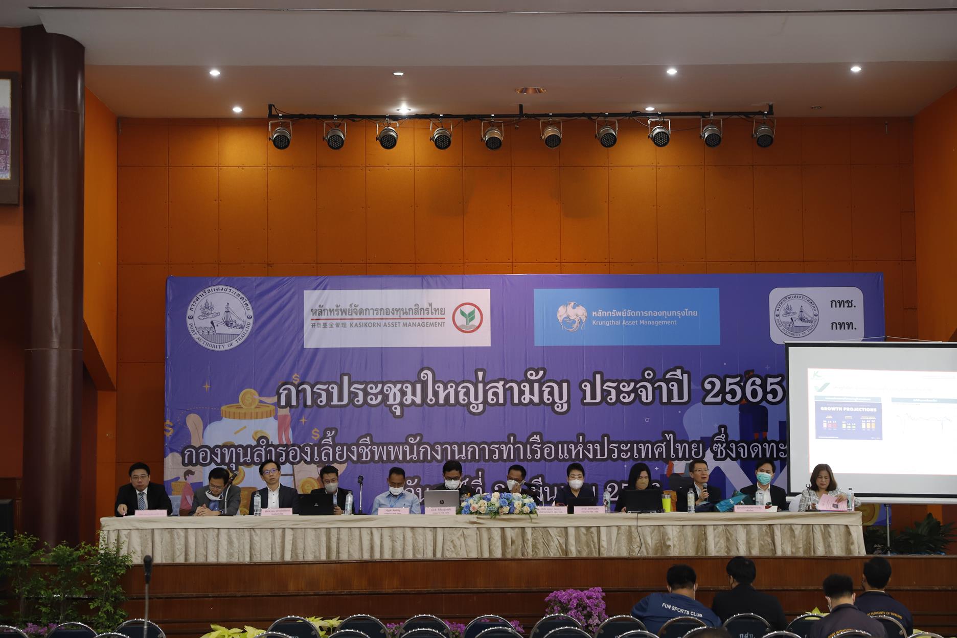 On March 31, 2023, Lt. Yutthana Mokkhao, Deputy Director of the Port Authority of Thailand Financial Management and Corporate Strategy Division As Chairman of the Port Authority Employees’ Provident Fund Chaired the opening of the 2022 Annual General Meeting to report a summary of the 2022 operating results in accordance with the Fund’s regulations. to fund members along with Krungthai Asset Management Public Company Limited and Kasikorn Asset Management Company Limited, which are companies that manage the Port Authority’s provident funds. which has been registered Participate in providing information and answering questions at the Port Authority Club.
