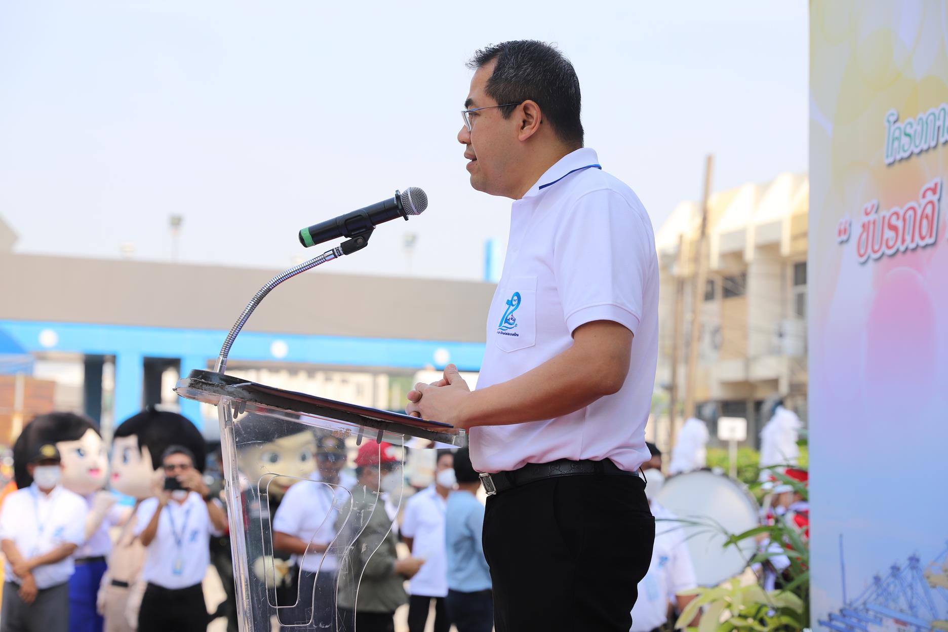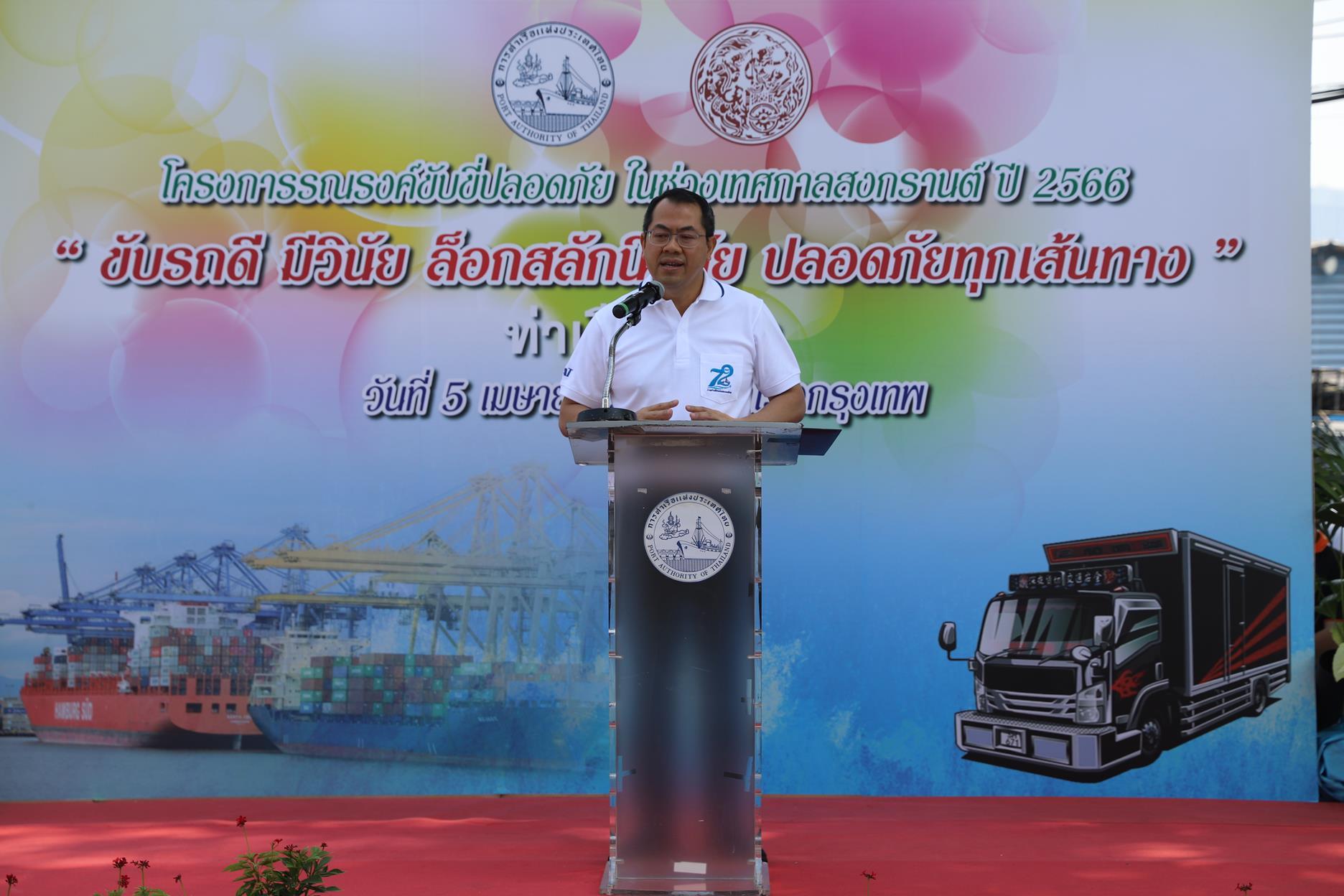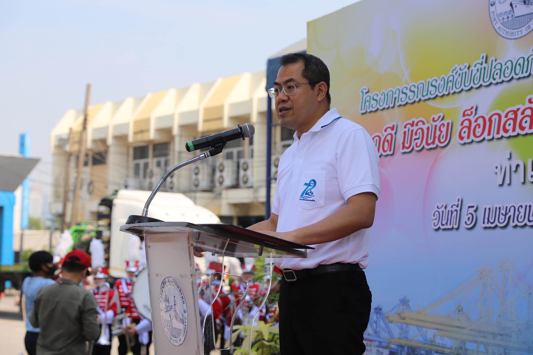 On April 5, 2023, Mr. Kriengkrai Chaisiriwongsuk, Director of the Port Authority of Thailand (PAT), presided over the opening of the safe driving campaign during the Songkran Festival 2023. “Drive well, be disciplined, lock the safety latch. Safe on every route” with Mr. Apisate Phongsuwan, Deputy Director of the Port Authority for Asset Management and Business Development. Mr. Rueangsak breed reward Deputy Director of the Port Authority Information Technology Division, Lieutenant Phum Saengkham, Director of Bangkok Port, Mr. Taemsin Sribangphlinoi Deputy Director of Bangkok Port along with PAT executives and employees Representative of the Office of Transport and Traffic Policy and Planning Representative of the Office of Aquatic Safety and Environment Director of Khlong Toei District Office Bangkok Boat Owners and Agents Association Tha Ruea Metropolitan Police Station Representatives of communities surrounding Bangkok Port Representatives of relevant private companies, etc., attended the ceremony at the outbound western dam gate of Bangkok Port.