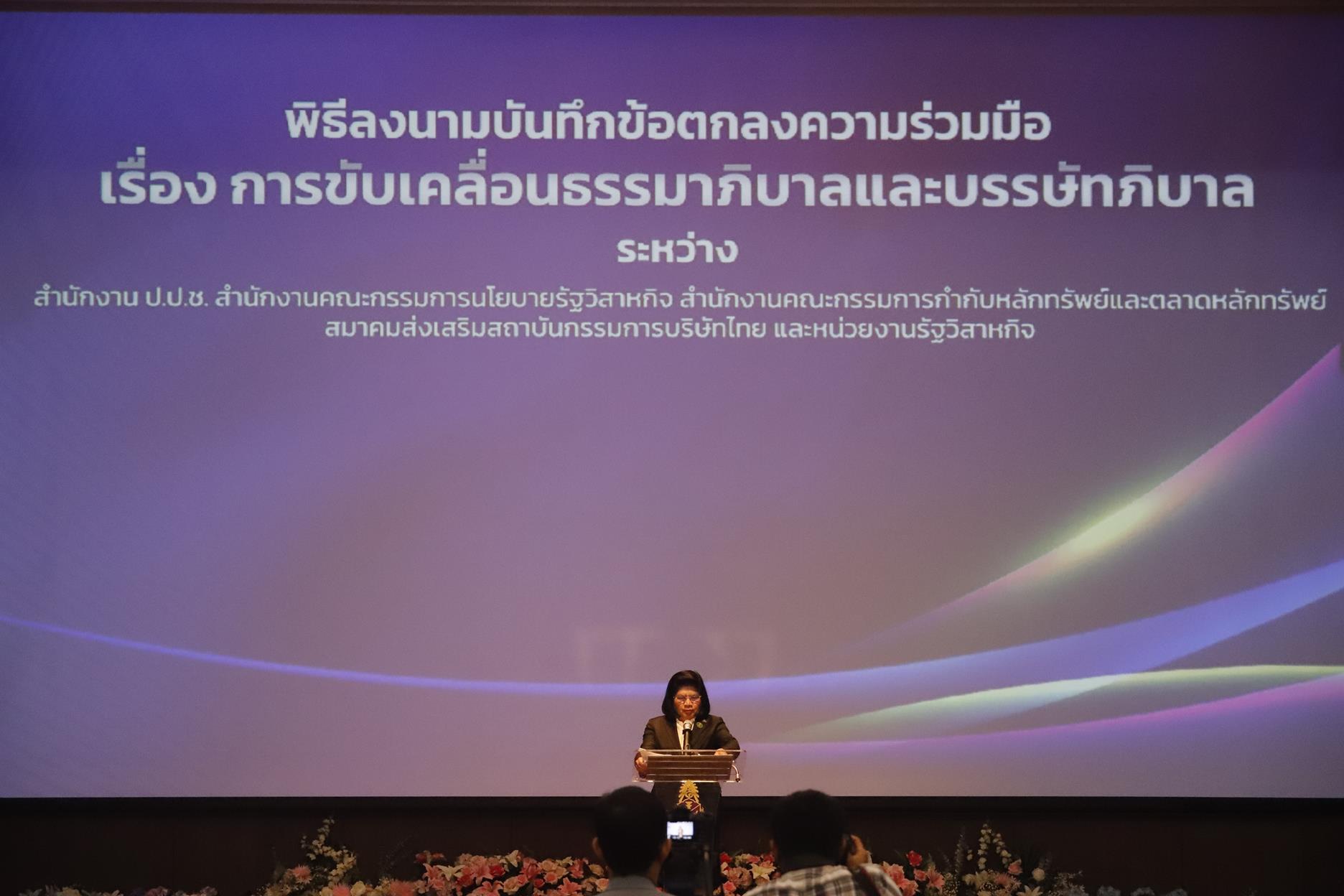 เมื่อวันที่ 20 เมษายน 2566 นางสุวณา สุวรรณจูฑะ กรรมการ ป.ป.ช. เป็นประธานในพิธีลงนามในบันทึกข้อตกลงความร่วมมือ เรื่องการขับเคลื่อนธรรมาภิบาลและบรรษัทภิบาล ระหว่างสำนักงาน ป.ป.ช. สำนักงานคณะกรรมการนโยบายรัฐวิสาหกิจ สำนักงานคณะกรรมการกำกับหลักทรัพย์และตลาดหลักทรัพย์ สมาคมส่งเสริมสถาบันกรรมการบริษัทไทย และหน่วยงานรัฐวิสาหกิจ จำนวน 51 แห่ง โดยมีนายเกรียงไกร ไชยศิริวงศ์สุข ผู้อำนวยการการท่าเรือแห่งประเทศไทย เข้าร่วมลงนามฯ เพื่อน่วมส่งเสริม สนับสนุนและ ประสานความร่วมมือให้เกิดการขับเคลื่อนแผนแม่บทภายใต้ยุทธศาสตร์ชาติ (21) ประเด็นการต่อต้านการทุจริตและประพฤติมิชอบ (2561-2580) และพัฒนาการยกระดับธรรมาภิบาลและบรรษัทภิบาลในภาครัฐวิสาหกิจและภาคเอกชนที่เป็นคู่สัญญากับหน่วยงานรัฐวิสาหกิจ ตลอดจนบูรณาการและประสานความร่วมมือจากหน่วยงานและองค์กรที่เกี่ยวข้องในการป้องกัน และปราบปรามการทุจริตในภาครัฐวิสาหกิจทุกรูปแบบ และนำแผนปฏิบัติการต่อต้านการทุจริตและประพฤติมิชอบในภาครัฐวิสาหกิจ (พ.ศ. 2566 – 2570) ไปขับเคลื่อนอย่างเป็นรูปธรรมโดยปรับใช้ตามความเหมาะสมกับบริบทของแต่ละหน่วยงาน โดยภายในงานมีการปาฐกถาพิเศษเรื่อง “การยกระดับธรรมาภิบาลและบรรษัทภิบาลในภาครัฐวิสาหกิจและภาคเอกชนที่เป็นคู่สัญญากับหน่วยงานรัฐวิสาหกิจ” โดย นายวิษณุ เครืองาม รองนายกรัฐมนตรี ณ ห้องนนทบุรี 1 สำนักงาน ป.ป.ช. ถนนสนามบินน้ำ อำเภอเมืองนนทบุรี จังหวัดนนทบุรี