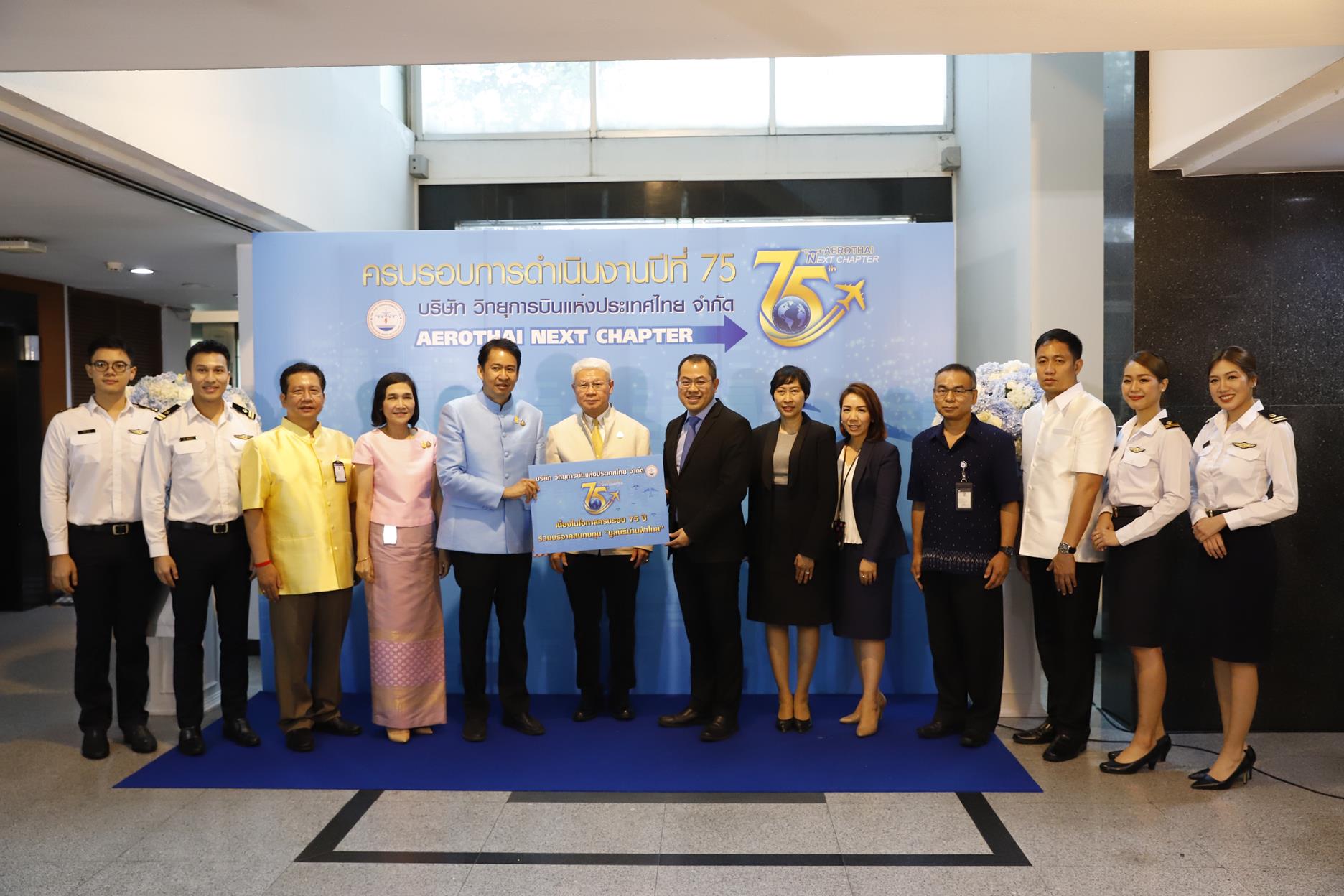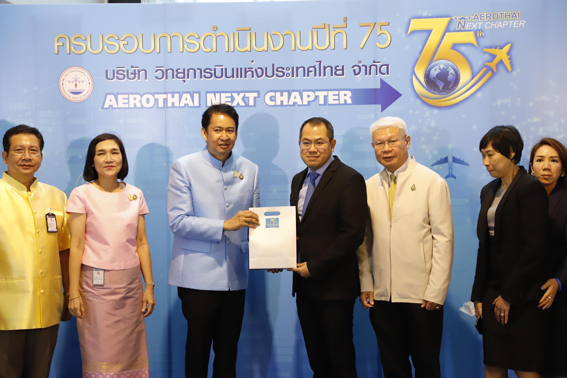 On April 28, 2023, Mr. Parinya Sangsuwan, Chairman of the Port Authority of Thailand, along with Mr. Kriangkrai Chaisiriwongsuk Director of the Port Authority and related employees join in congratulations Along with presenting a basket to Mr. Noppasit Chakpitak, President of Aeronautical Radio of Thailand Co., Ltd. on the occasion of the 75th operational anniversary of Aeronautical Radio Co., Ltd. at the Administration Building of Aeronautical Radio Co., Ltd. Head Office ( Thung Maha Mek)