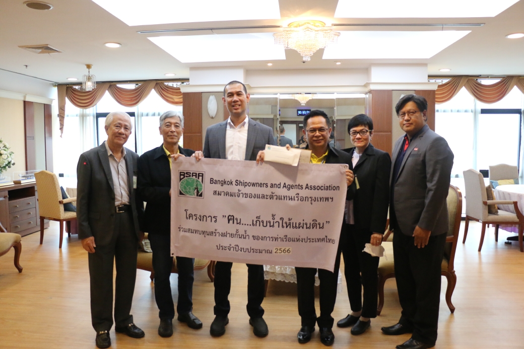 On May 9, 2023, Mr. Kriengkrai Chaisiriwongsuk Director of the Port Authority of Thailand and Lieutenant Yuttana Mokkhao, Deputy Director of the Port Authority of Thailand Financial Management and Corporate Strategy Division Receive financial support for the project “People…collect water for the country” from representatives of the Bangkok Ship Owners and Agents Association (BSAA) on this occasion joined in discussing business cooperation guidelines and helping develop society and the environment between organizations at the lounge on the 17th floor. Port