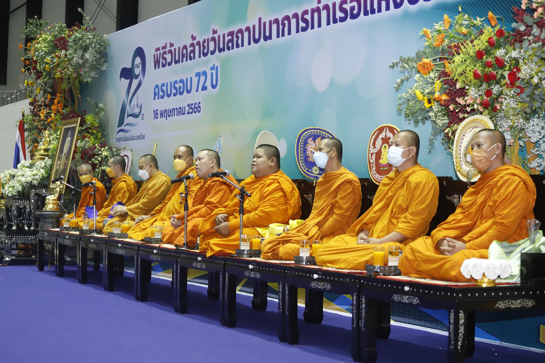 For organizing a ceremony on the occasion of the 72nd anniversary of SAT. In the morning, PAT Organized a ceremony to worship and worship sacred objects of the organization. Consisting of Luang Pho Wat Rai Khing Phra Buddha Samut Mongkhon Khet, Phra Phum Shrine, Chao Mae Phut Son Shrine and Phra Pradaeng Shrine For the good fortune and prosperity of the organization Along with giving awards to employees who perform well and have determination in their diligence and dedication until results are evident. By giving awards to valuable people at PAT. Outstanding employee and the Wichian Manee Chai Award And give souvenirs to employees who have completed 35 years of service, 25 years, and 15 years to provide morale and encouragement to workers. In addition, a ceremony was held to worship the sacred locket of Father Pu Phra Pradaeng, which is a sacred object that PAT employees use. respected for a long time By Brahma Pakorn Wutthiprahman from the Brahma Swing Pillar Church. Royal Ceremonial Division Bureau of the Royal Household and the Phuttha Phisek Ceremony of Father Pu Phra Pradaeng’s locket By 10 monks led by Phrarajasitthiwimon (Chao Khun Thanom) Abbot 2, Assistant Abbot of Wat Suthat Thepwararam Ratchawora Mahawihan. It will be given to all employees as a souvenir to promote good fortune and act as a reminder.