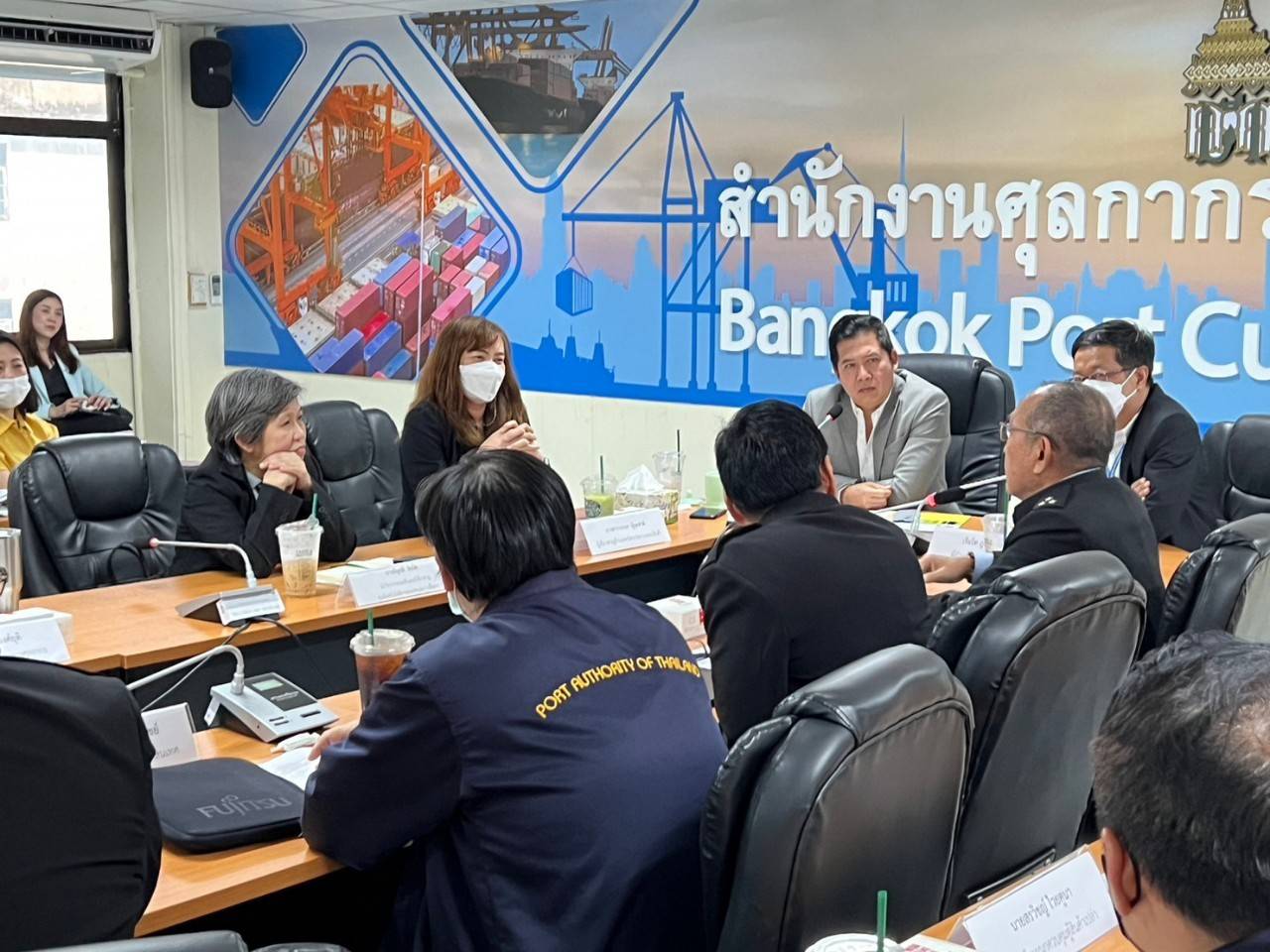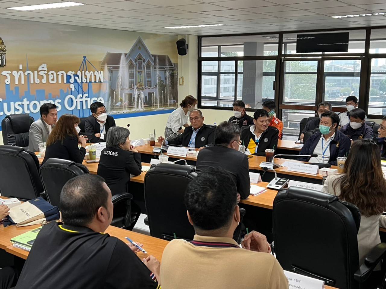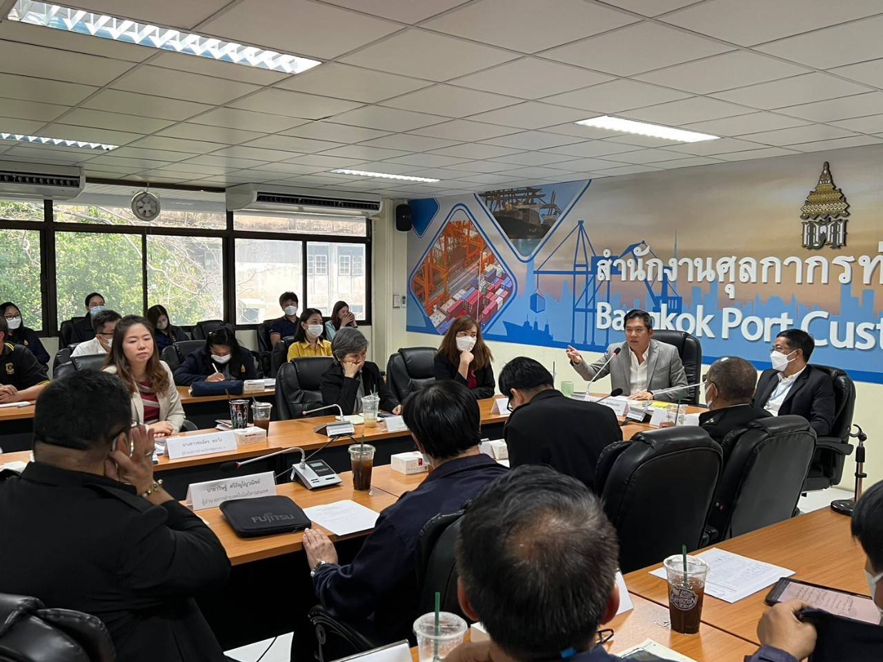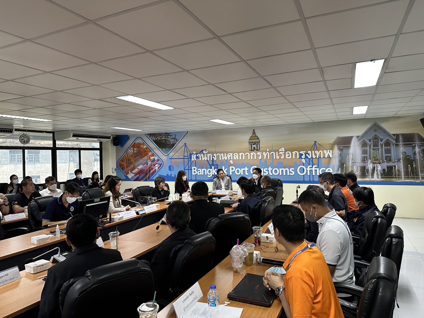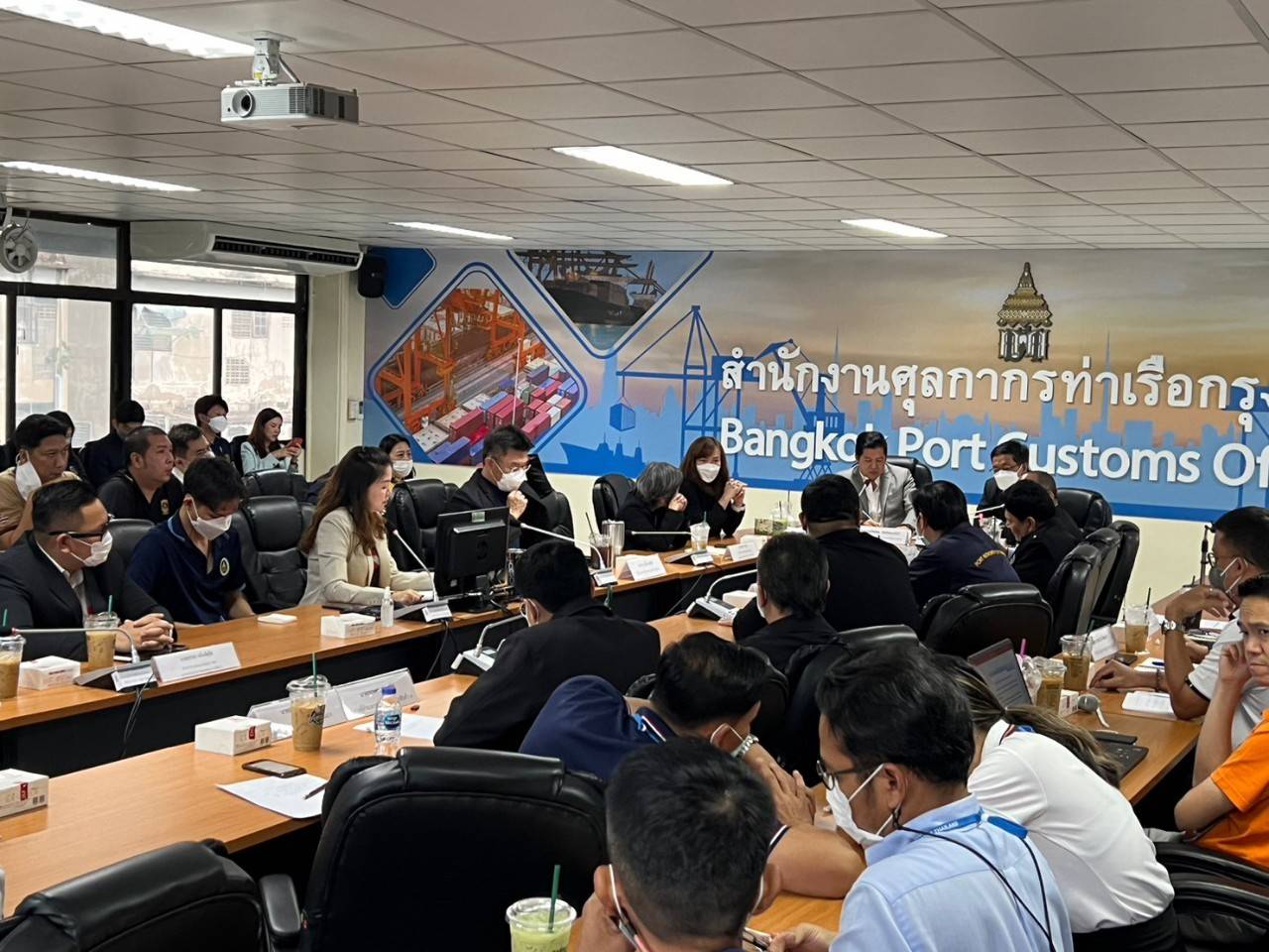 เมื่อวันที่ 1 มิถุนายน 2566 เรือโท ภูมิ แสงคำ ผู้อำนวยการท่าเรือกรุงเทพ พร้อมด้วยนายเรืองศักดิ์ บำเหน็จพันธุ์ รองผู้อำนวยการการท่าเรือแห่งประเทศไทย สายเทคโนโลยีสารสนเทศ และพนักงานการท่าเรือฯ ที่เกี่ยวข้อง พร้อมด้วยพันตำรวจเอก ณรัชต์พล เลิศรัชตะปภัสร์ ผู้อำนวยการสำนักงานศุลกากรท่าเรือกรุงเทพ ร่วมกับคณะทำงานเพิ่มประสิทธิภาพกระบวนการตรวจปล่อยสินค้าขาออก ประชุมหารือการพัฒนาระบบตัดบัญชีใบกำกับตู้สินค้าในระบบ (e-matching) และการขนย้ายของกลางไม้พะยูง พร้อมทั้งกำหนดรายละเอียดการควบคุมการขนย้ายของกลางไม้พะยูง รวมถึงหารือเพื่อเพิ่มประสิทธิภาพการทำงานร่วมกันระหว่างหน่วยงาน ณ ห้องประชุมเจ้าพระยา อาคารขาออกริมน้ำ ชั้น 3 สำนักงานศุลกากร ท่าเรือกรุงเทพ