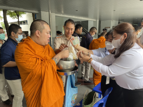 On July 17, 2023, Mr. Taemsin Sribangphlinoi Deputy Director of the Bangkok Port, Acting Lt. Ratthakorn Khieopaisan, Executive Officer 16, assigned to the Director of the Port Authority of Thailand. along with Port Authority employees Participate in the activity of giving alms to monks every day at the Big Buddha. For good fortune and to inherit the good culture and traditions of Thailand. By inviting three monks from Khlong Toei Nok Temple to receive alms on the ground floor. Port Office Building