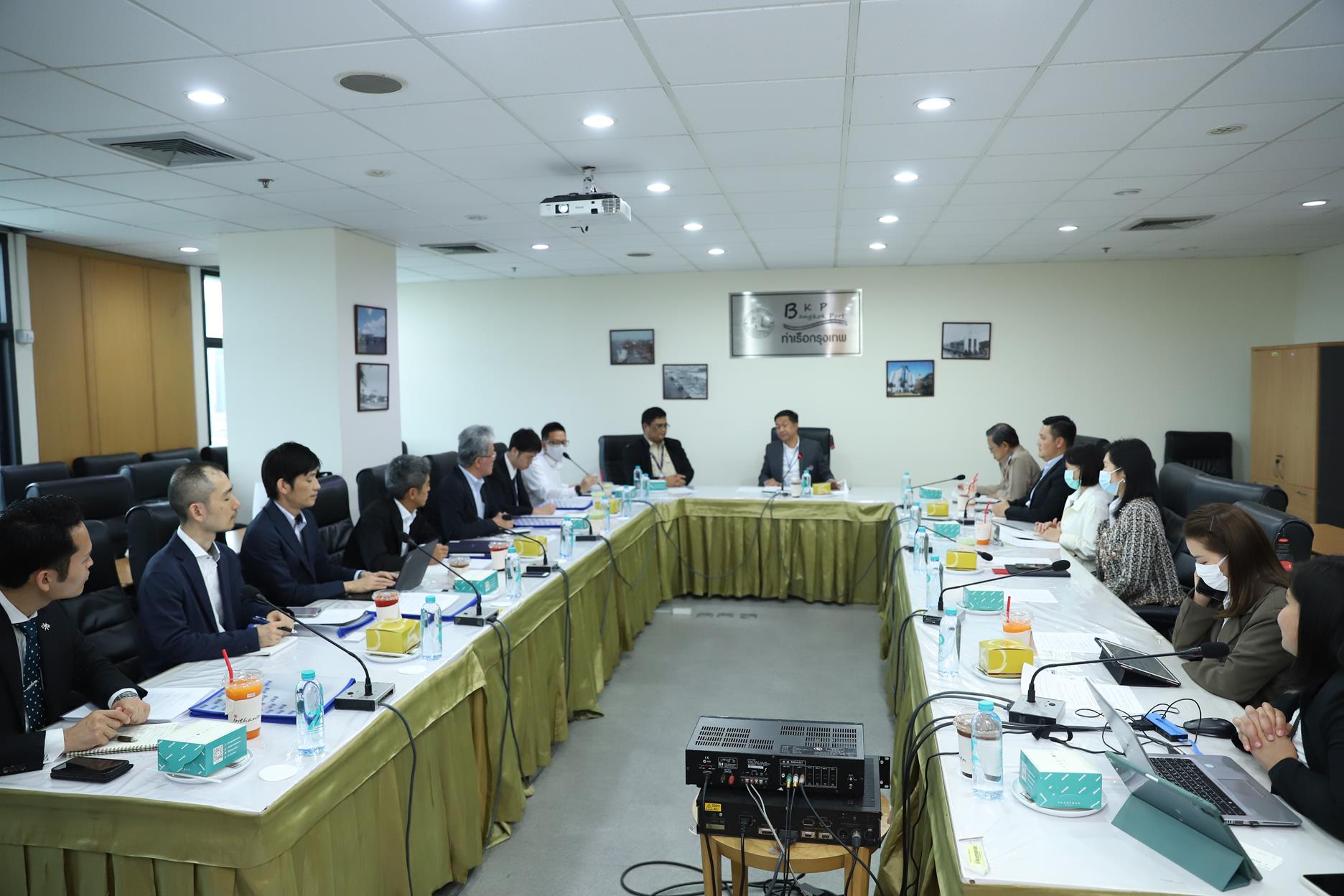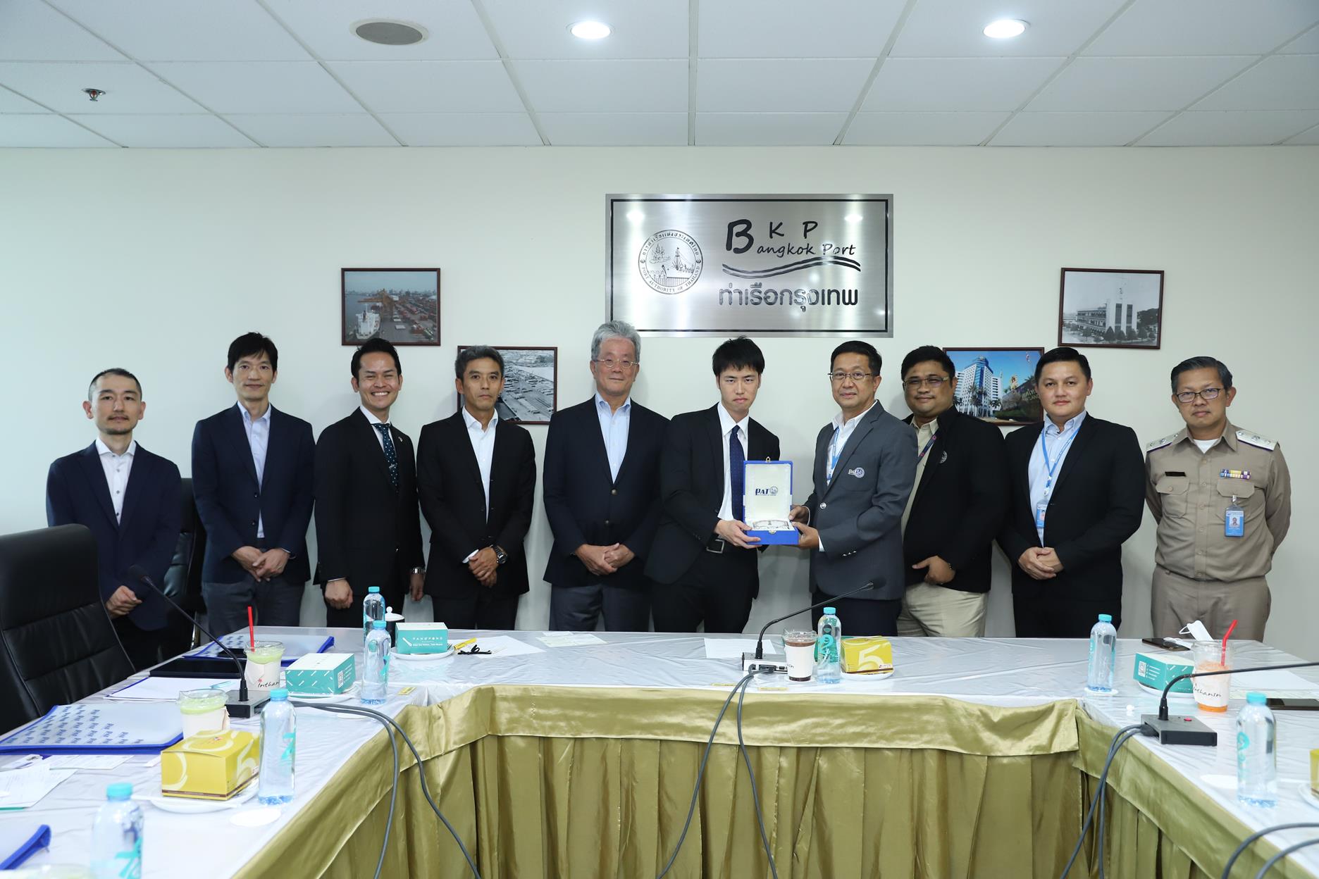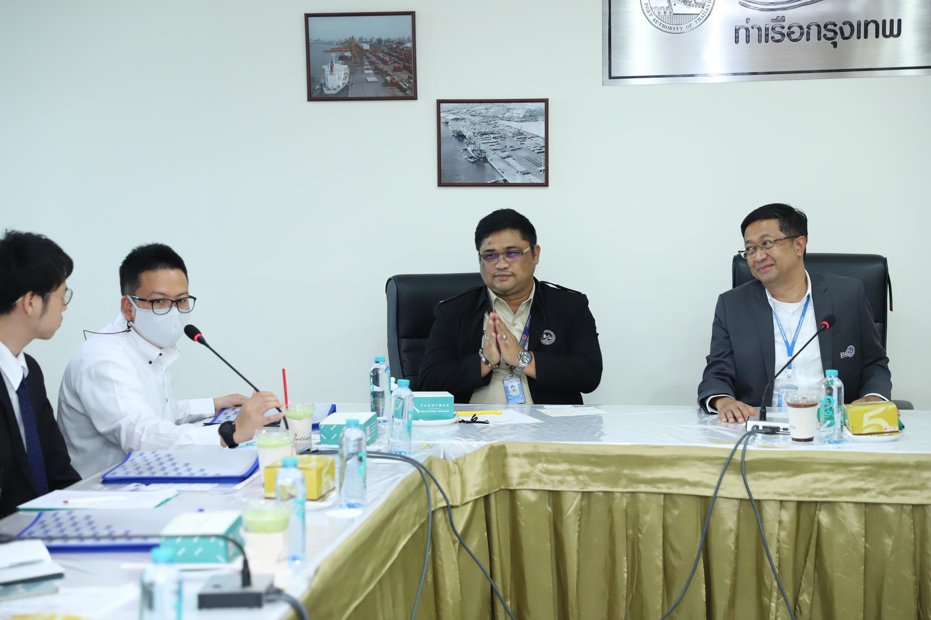 On July 24, 2023, Lieutenant Phum Saengkham, Director of Bangkok Port along with Port Authority of Thailand employees related Participated in welcoming the senior executives from the Ministry of Lands. Infrastructure Ministry of Land, Infrastructure, Transport and Tourism (MLIT) to discuss the development project of Bangkok Port Laem Chabang Port Rail transport of containers coastal port development Including the development of a green port. and digital technology development projects of the Port Authority at meeting room 1301, Port Authority Building. By the delegation It is scheduled to visit and study the transportation of containers by rail. and Coastal Terminal A at Laem Chabang Port on 25 July 2023.