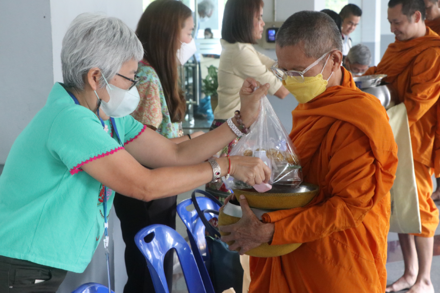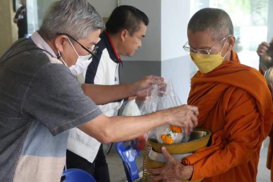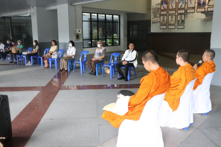 On July 26, 2023, Mr. Taemsin Sribangphlinoi Deputy Director of Bangkok Port along with Port Authority employees Participate in the activity of giving alms to monks every day at the Big Buddha. For good fortune and to inherit the good culture and traditions of Thailand. By inviting three monks from Khlong Toei Nok Temple to receive alms on the ground floor. Port Office Building