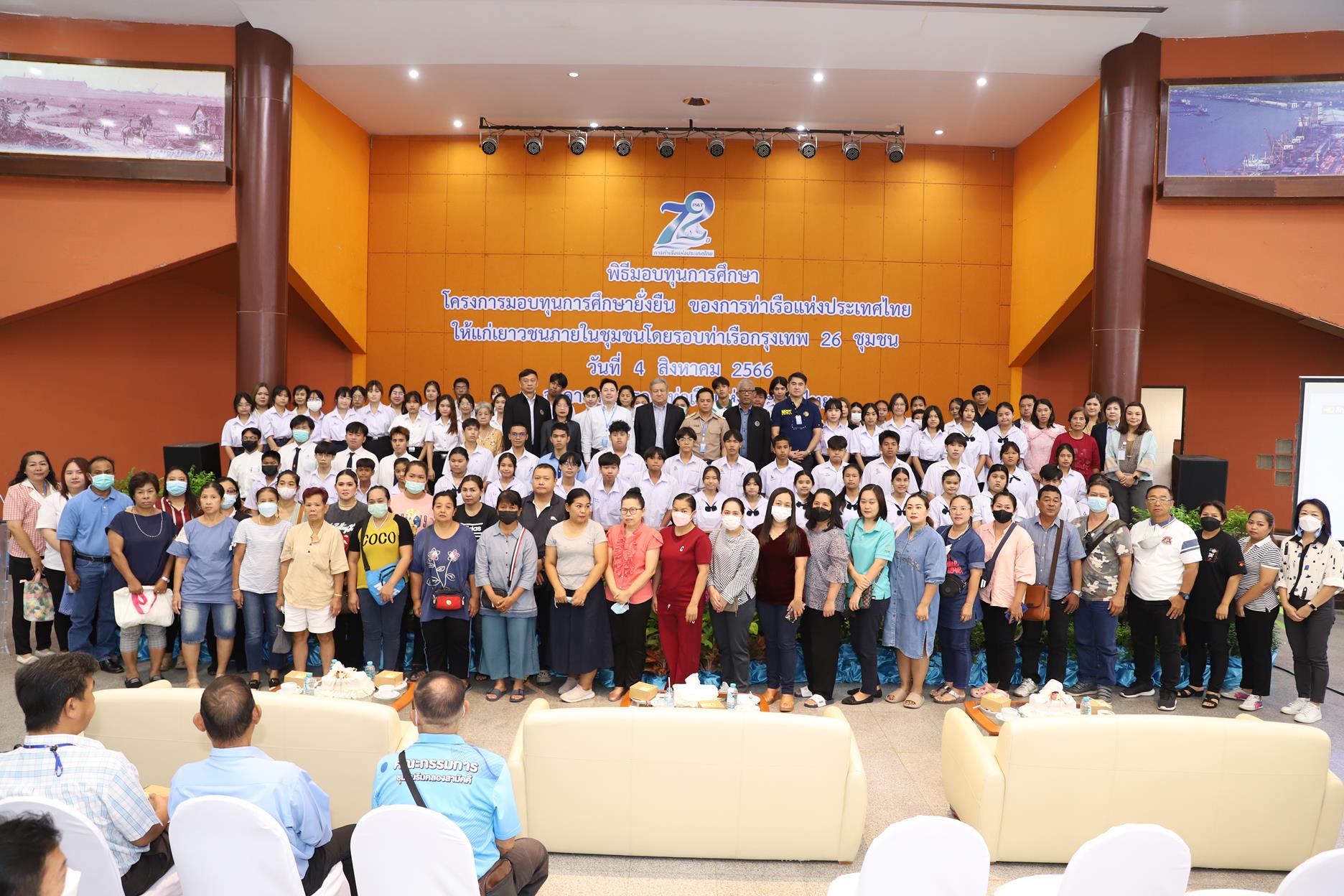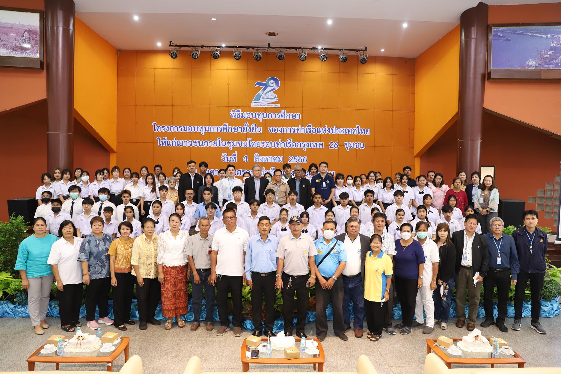 On August 4, 2023, Lt. Yutthana Mokkhao, Deputy Director of the Port Authority of Thailand Financial Management and Corporate Strategy, Mr. Apisate Phongsuwan, Deputy Director of the Port Authority Asset Management and Business Development Division along with executives and Port Authority employees Participated in the scholarship award ceremony for a total of 193 scholarships in the Port Authority’s sustainable scholarship program. Fiscal year 2023 to students in the area surrounding the Port Authority. To support scholarships for youth who are determined to study. but lacking funds From primary school level to bachelor’s degree level including supporting non-formal forms of education and informal education or NFE In order to continuously expand educational opportunities Help relieve parents’ burden on education expenses throughout the year. Including being an inspiration to youth in the community Behave as a good person and be a good role model for the community and society in the future at the Port Authority Club Building.